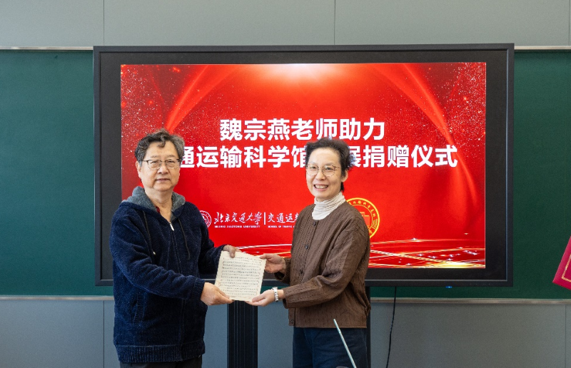 2025 年 10 月 21 日上午 9 时,交通运输科学馆珍贵展品捐赠仪式在北京交通大学第八教学楼8617会议室隆重举行。交通运输科学馆科学顾问、《铁道知识》杂志社原社长兼主编魏宗燕先生向科学馆捐赠了一批极具历史价值的珍贵展品。交通运输学院党委书记孙冬梅,党委副书记、副院长陈军华,实验中心全体教师,科普服务团师生代表出席活动。