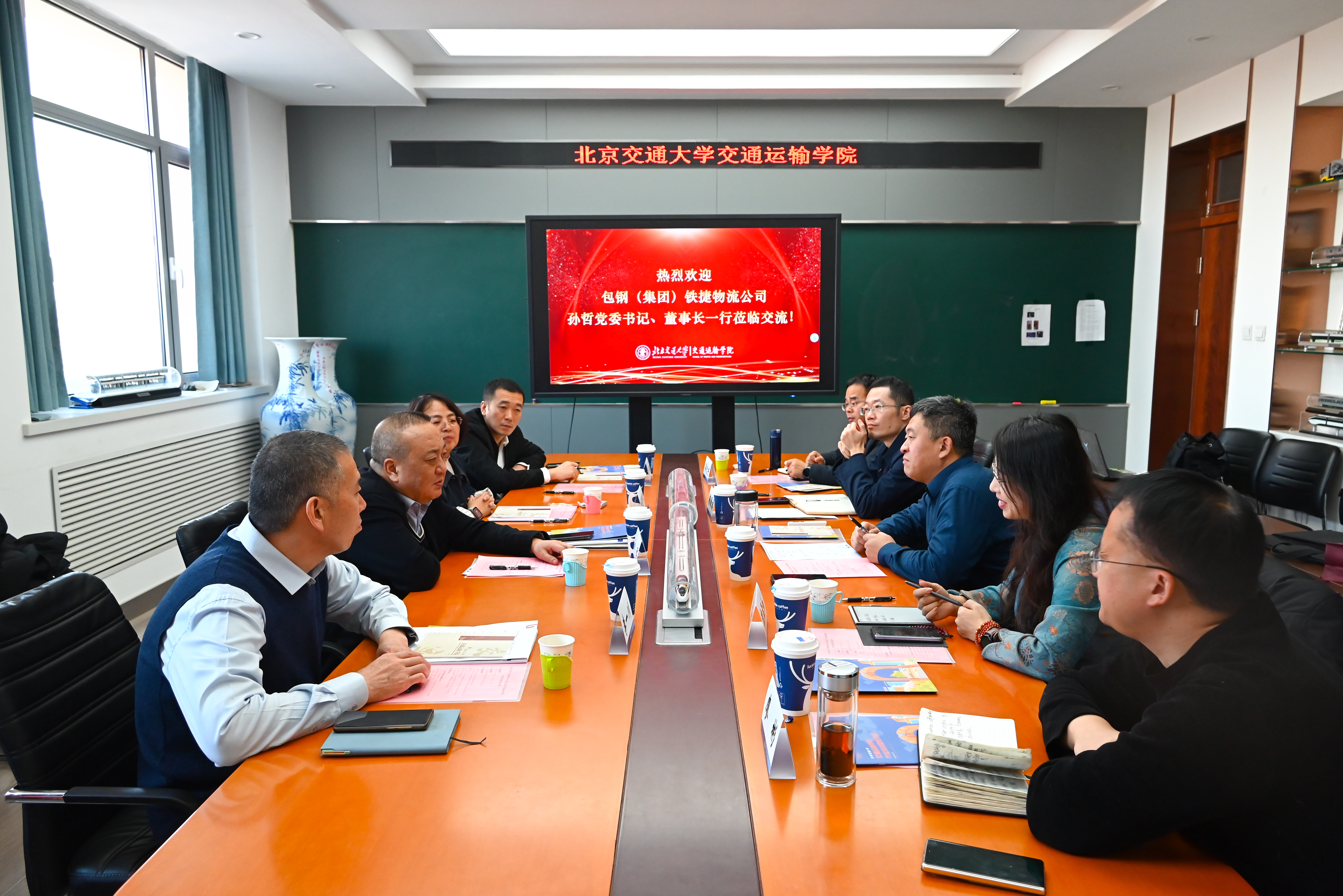 2025年12月11日上午,学院与包头钢铁(集团)铁捷物流有限公司(以下简称“包钢铁捷物流公司”)产学研合作签约仪式,在我校第八教学楼8617会议室顺利举行。包钢(集团)公司总经理助理、包钢铁捷物流公司党委书记、董事长孙哲,副总经理刘惠军,技术专家李一川,技术主管李君;北京交通大学交通运输学院院长孟令云,副院长唐源洁,信息系党支部书记沈孟如,交通工程系副主任吴先宇,校友总会物流分会秘书长廖彬等双方代表出席活动。仪式由唐源洁副院长主持。
