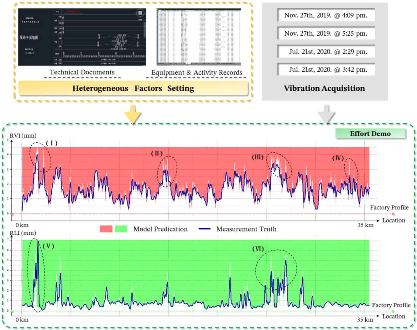 借助信号分析手段与惯性导航理论,结合机器学习技术,探索在强噪声与复杂动力学环境下为添乘晃车、轮轨噪声等多源数据进行精准里程定位与校准的理论方法与实现技术,同时为后续轨道病害诊断与劣化预测研究提供高质量数据基础。相关成果已在不介入列控系统、无GNSS支持的单传感器轻量化架构下将便携式轨道检查数据的定位误差控制在±5米内,相关系统已在北京、重庆等地十余家城市轨道交通运营单位实现工程应用。该研究方向近五年培养博士生(含在读)4名。