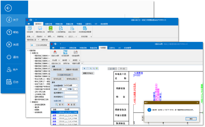 构建重点运输任务综合技术资料图数据标准,形成线路综合技术资料基础数据及全流程管理手段,开发基于Windows平台的单机版管理工具,解决综合技术资料图绘图、更新效率低等问题。基于专用设备实现线路综合技术资料图查询、管界图查询、列车模拟运行和数据维护等功能模块,以及列车模拟运行的可视化展示。